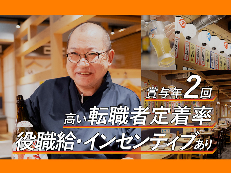 ●賞与年2回インセンティブ・考課給あり。高い転職定着率!メディアでも話題の人気店を手掛ける急成長企業!業績好調で新店舗もオープン予定◎圧倒的な成長スピード・将来性&持続性のある会社で飲食人としてスキル
